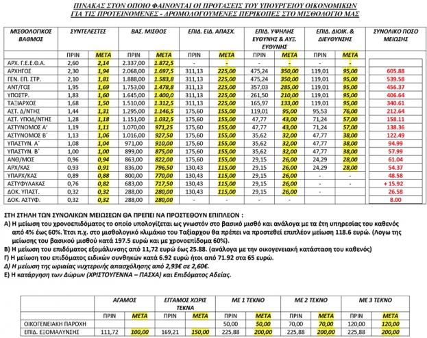 Οι αστυνομικοί κατόρθωσαν μετά από ολοήμερο…κυνηγητό κι αφού όλοι οι αρμόδιοι υπουργοί , κρύβονταν και κρύβονται να βρει και να παρουσιάσει σε πίνακες τις μιεώσεις που έρχονται και οι οποίες θα είναι δραματικές. Ο μισθός του Α/ΓΕΕΘΑ προσδιορίζεται στα 1872 ευρώ και από εκεί αρχίζει η κατηφόρα.