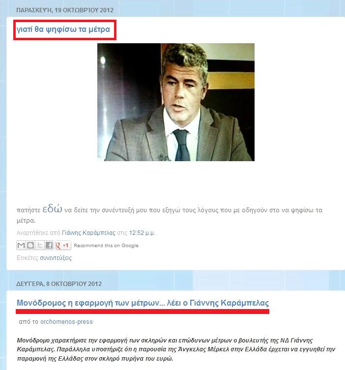 Ας δούμε λίγο τι πρέσβευε ο κ. Καράμπελας, τι δήλωνε προεκλογικά για τα μνημόνια, τα τότε μέτρα, την εθνική κυριαρχία, τον ΓΑΠ, τις διαπραγματεύσεις και τις συγκρούσεις του Σαμαρά….