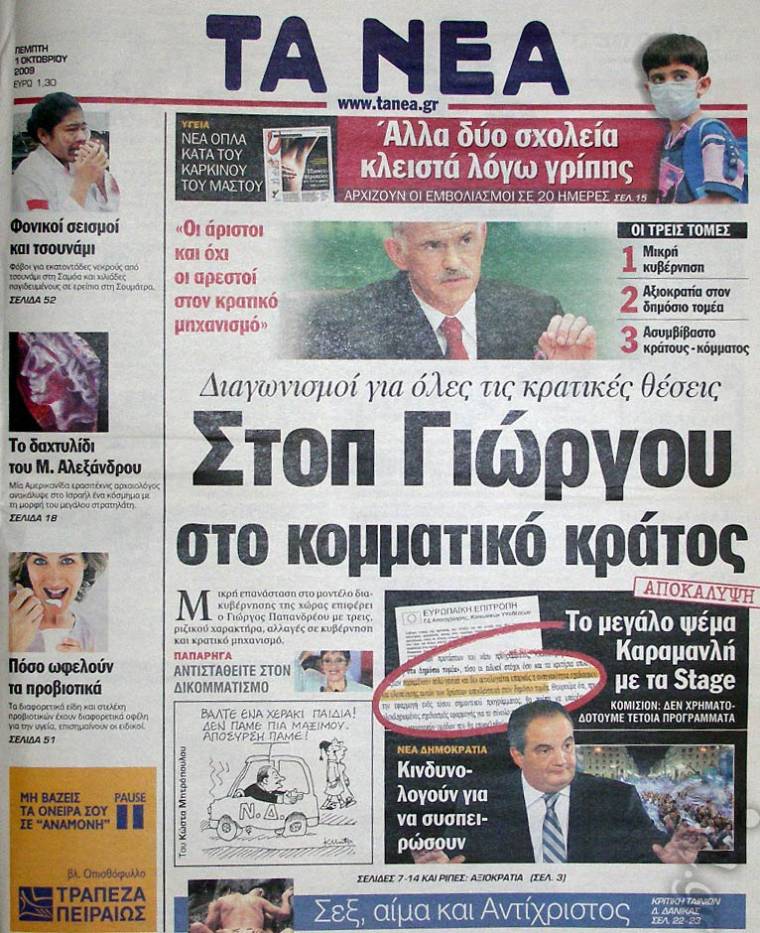 ΔΕΙΤΕ ΤΑ ΠΡΩΤΟΣΕΛΙΔΑ ΤΩΝ ΜΕΓΑΛΩΝ ΕΦΗΜΕΡΙΔΩΝ,ΛΙΓΟ ΠΡΙΝ ΤΙΣ ΕΚΛΟΓΕΣ ΤΟΥ 2009,ΤΑ ΟΠΟΙΑ ΠΑΡΟΥΣΙΑΖΑΝ ΤΟΝ ΓΙΩΡΓΟ ΠΑΠΑΝΔΡΕΟΥ,ΩΣ ΤΟΝ ΑΠΟΛΥΤΟ ΗΓΕΤΗ ΠΟΥ ΕΡΧΟΝΤΑΝ ΓΙΑ ΝΑ ΣΩΣΕΙ ΤΗΝ ΕΛΛΑΔΑ…