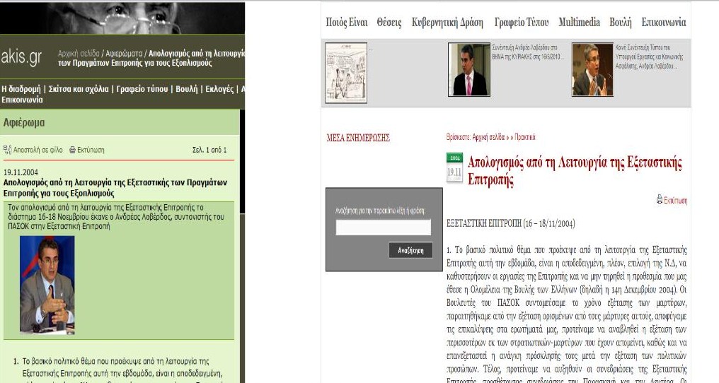 “Απολογισμός από τη λειτουργία της Εξεταστικής των Πραγμάτων Επιτροπής για τους Εξοπλισμούς”“ΕΞΕΤΑΣΤΙΚΗ ΕΠΙΤΡΟΠΗ (16 – 18/11/2004) 1. Το βασικό πολιτικό θέμα που προέκυψε από τη λειτουργία της Εξεταστικής Επιτροπής αυτή την εβδομάδα, είναι η αποδεδειγμένη, πλέον, επιλογή της Ν.Δ, να καθυστερήσουν οι εργασίες της Επιτροπής και να μην τηρηθεί η προθεσμία που μας έθεσε η Ολομέλεια της Βουλής των Ελλήνων (δηλαδή η 14η Δεκεμβρίου 2004). Οι Βουλευτές του ΠΑΣΟΚ συντομεύσαμε το χρόνο εξέτασης των μαρτύρων, παραιτηθήκαμε από την εξέταση ορισμένων από τους μάρτυρες αυτούς, αποφύγαμε τις επικαλύψεις στα ερωτήματά μας, προτείναμε να αναβληθεί η εξέταση των περισσοτέρων εκ των στρατιωτικών-μαρτύρων που έχουν απομείνει, καθώς και να επανεξεταστεί η ανάγκη πρόσκλησής τους μετά την εξέταση των πολιτικών προσώπων. Τέλος, προτείναμε να αυξηθούν οι συνεδριάσεις της Εξεταστικής Επιτροπής, προσθέτοντας συνεδριάσεις την Παρασκευή και την Δευτέρα. Οι Βουλευτές του ΚΚΕ και του Συνασπισμού συμφώνησαν με την επιλογή αυτή, προτείνοντας να συντομεύσει ο χρόνος πρόσκλησης των πολιτικών προσώπων (Γενικοί Γραμματείς ΥΕΘΑ, Υπουργοί Εθνικής Άμυνας). Αντιθέτως, οι Βουλευτές της Ν.Δ. αρνήθηκαν και απέρριψαν αυτές τις προτάσεις, επιμηκύνοντας ταυτοχρόνως το χρόνο της εκ μέρους τους εξέτασης των μαρτύρων. Είναι, πλέον, ξεκάθαρο, πως η Ν.Δ. επιδιώκει την επιβράδυνση του χρόνου λειτουργίας της Εξεταστικής Επιτροπής, επιθυμώντας την εξυπηρέτηση των μικροπολιτικών της σκοπιμοτήτων και αδιαφορώντας για τη συνέχιση μιας διαδικασίας η οποία α) ρίχνει σκιές στις Ένοπλες Δυνάμεις, β) σπιλώνει πολιτικά πρόσωπα και στρατιωτικούς και γ) δημιουργεί αδικαιολόγητη ένταση ανάμεσα στα πολιτικά κόμματα.